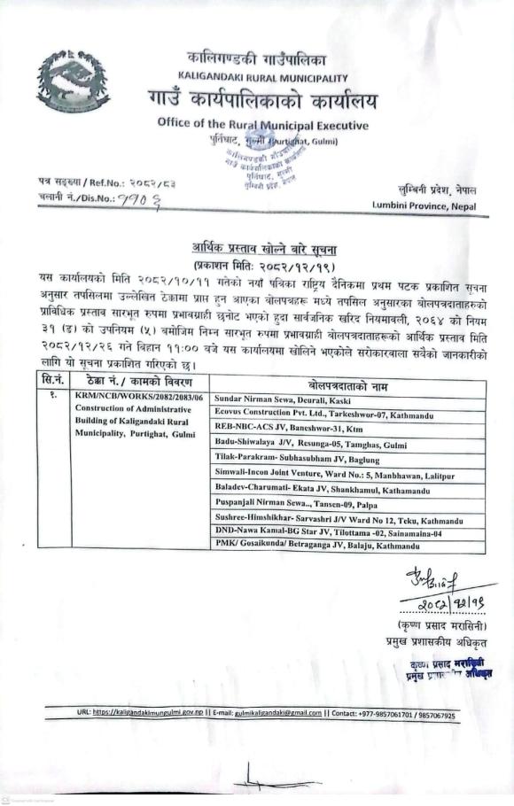 » आर्थिक प्रस्ताव खोल्ने बारे सूचना