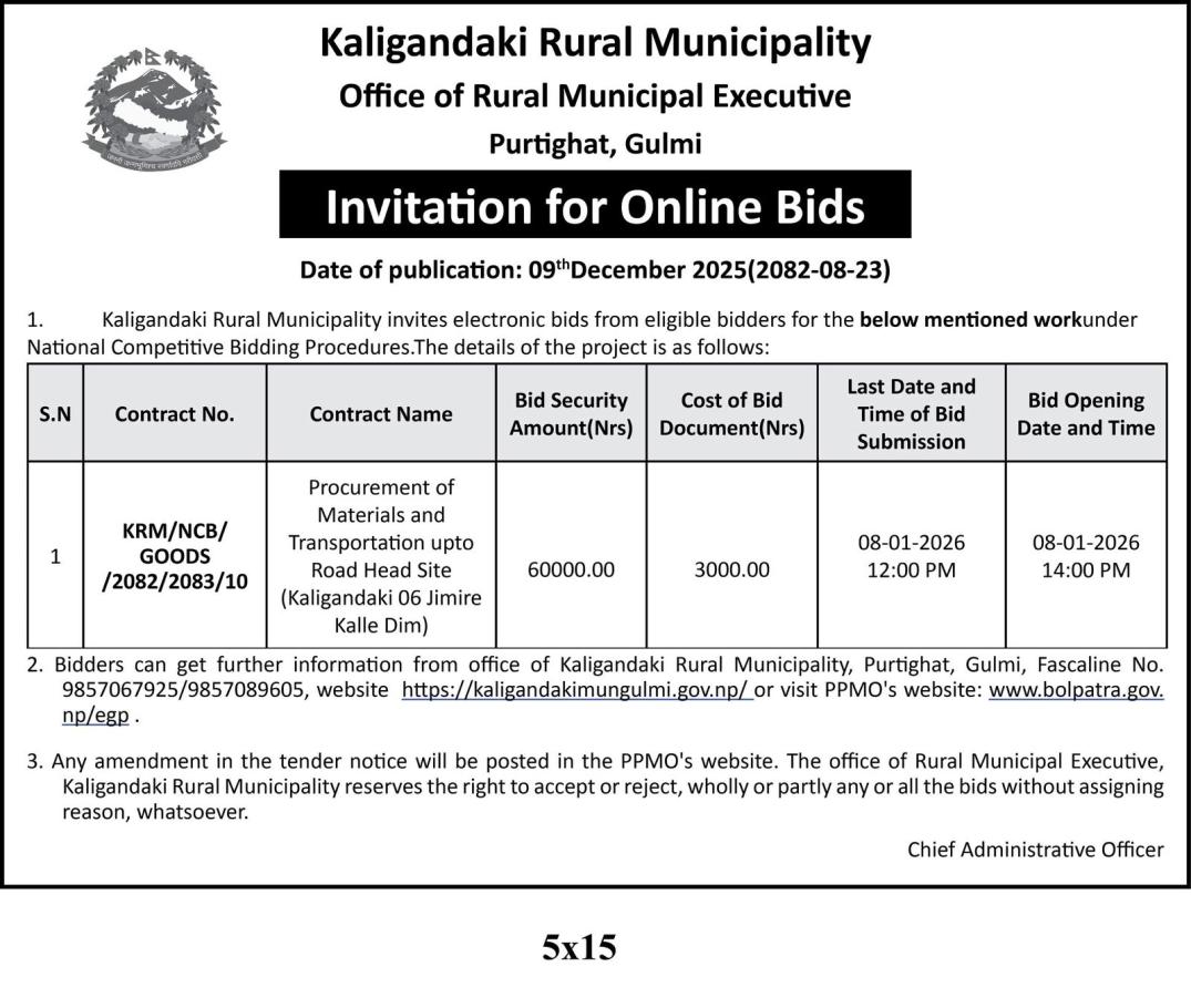 सार्वजनिक खरिद/बोलपत्र सूचना