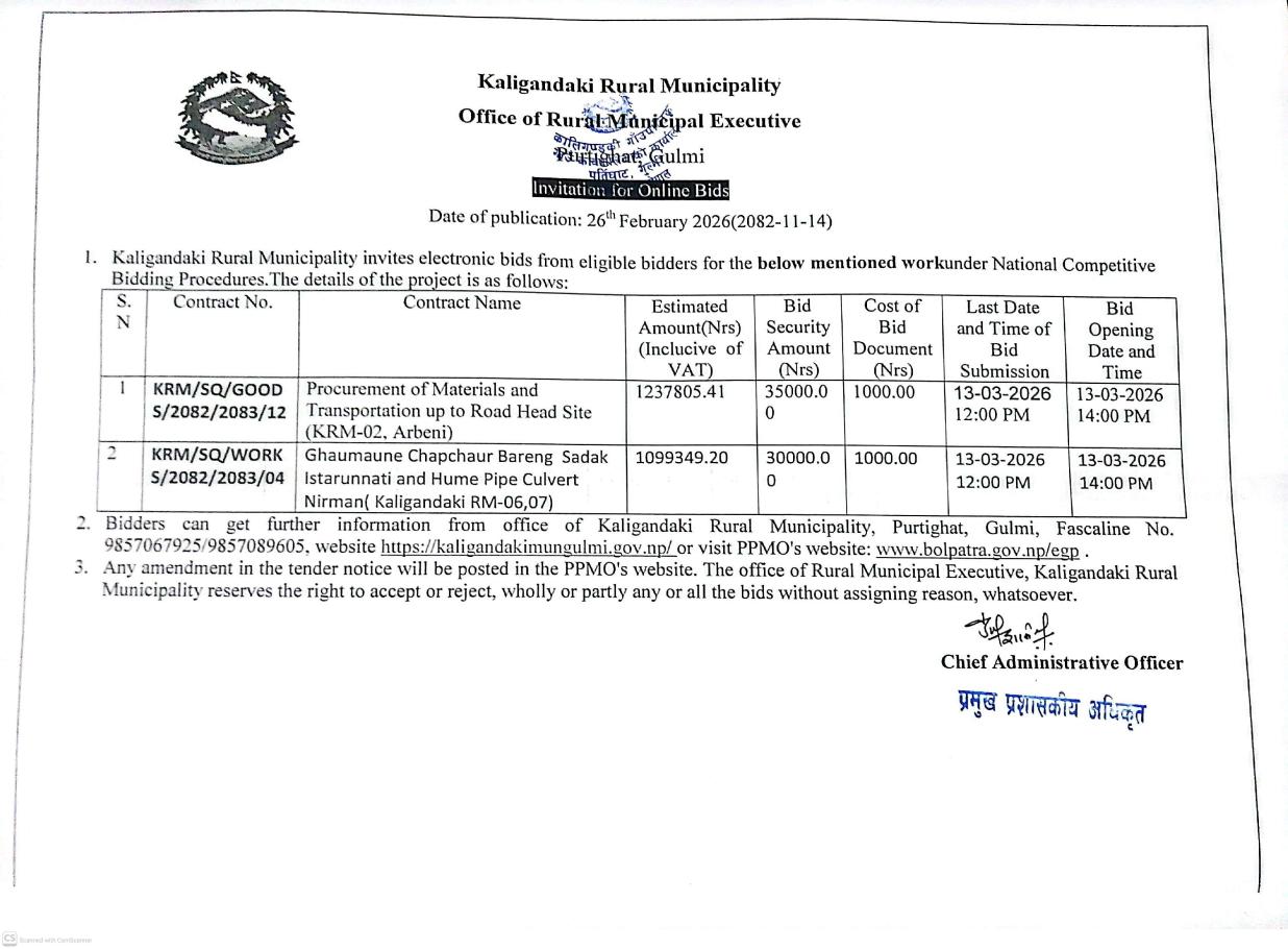 बोलपत्र आह्वान सम्बन्धी सूचना