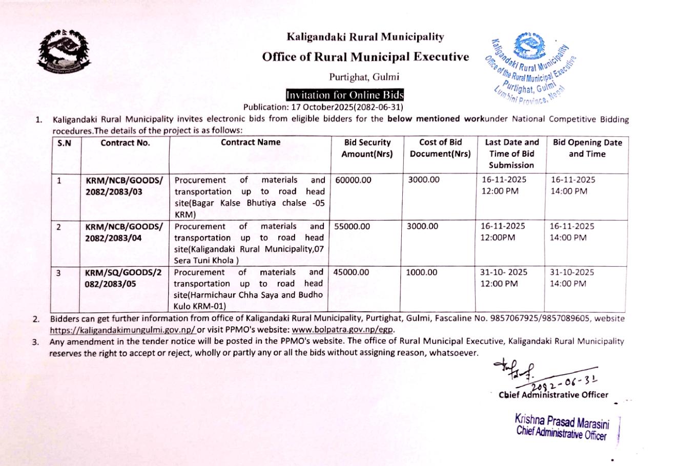 सार्वजनिक खरिद/बोलपत्र सूचना