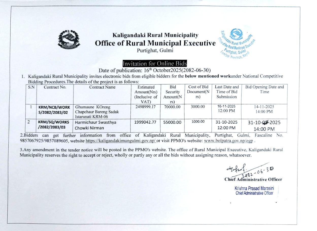 बोलपत्र आह्वान सम्बन्धी सूचना