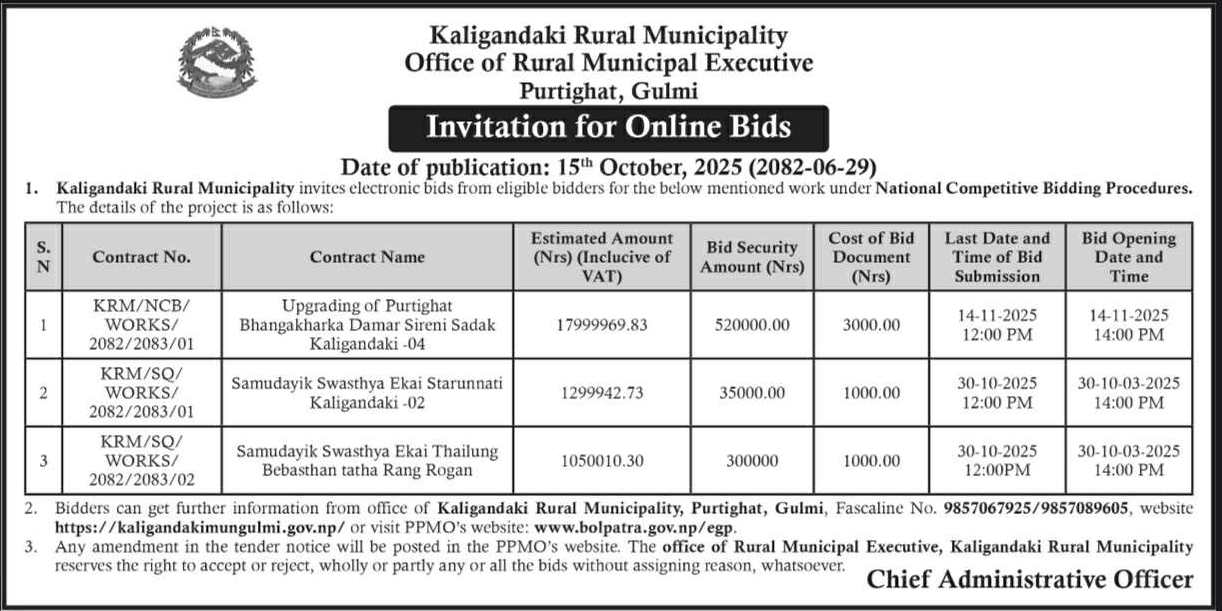 बोलपत्र आह्वान सम्बन्धी सूचना