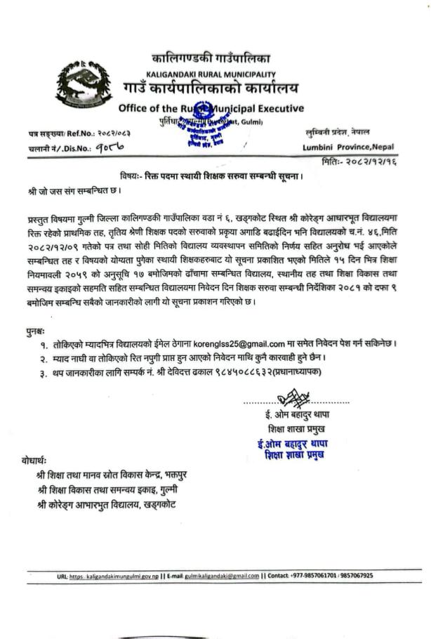 कालिगण्डकी गाउँपालिका ,गुल्मी ,लुम्बिनी प्रदेश , नेपाल